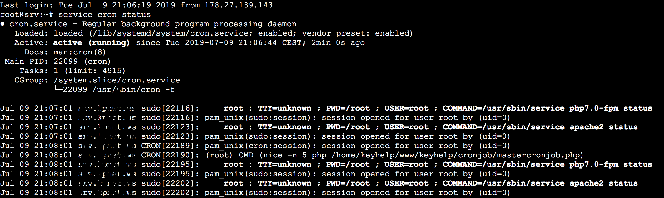 service cron statusUnd diese Datei sollte existieren und mit entsprechendem Inhalt gefüllt sein: