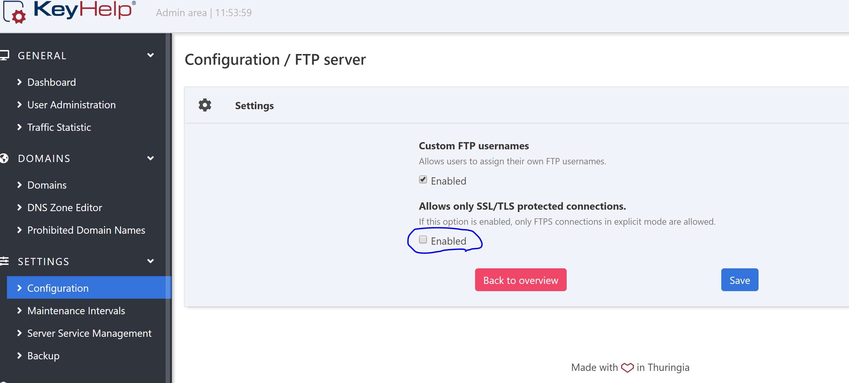 Almost nobody would want to do this (non-ssl ftp), especially when KeyHelp provides such good security - why not use it?