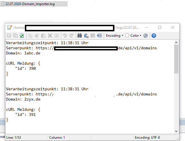 Import Log in Logdatei auf dem Server (Ordner "logs")