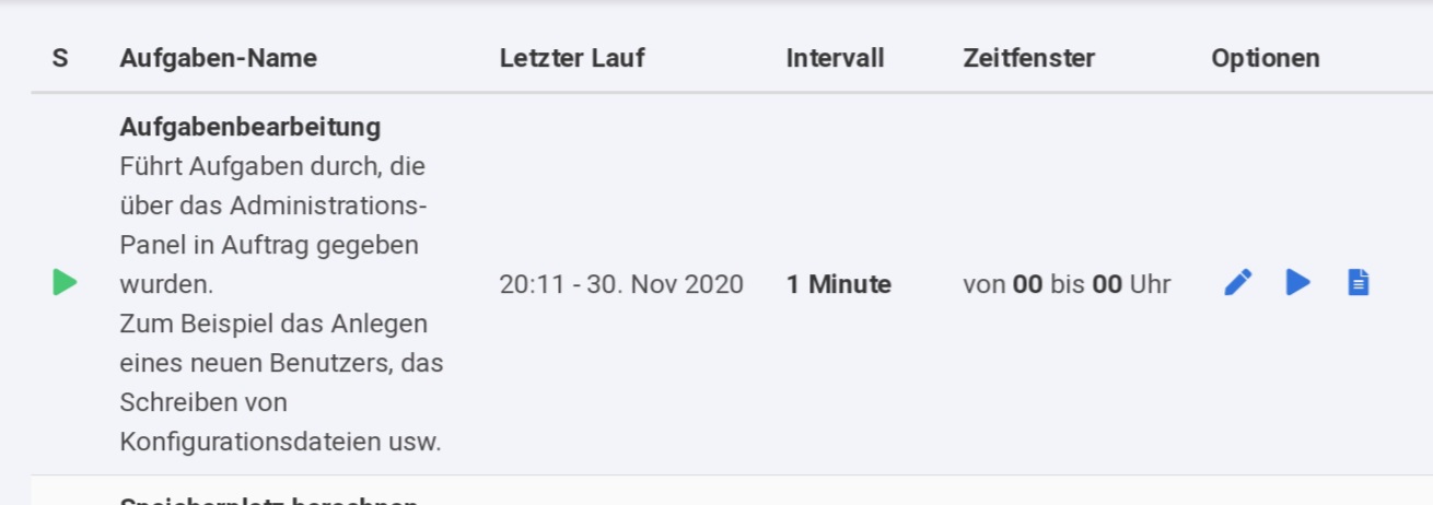 Unter "Wartungsintervalle" stehen mehrere Aufgaben, die ich vor Stunden manuell gestartet habe immer noch in der Warteschlange. Selbst bei der "Haupt" Aufgabe die 1x pro Stunde durchläuft ist das so.