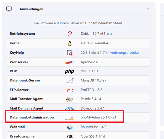 momentan wird phpMyAdmin mit KeyHelp in Version 4.7.5 ausgeliefert.