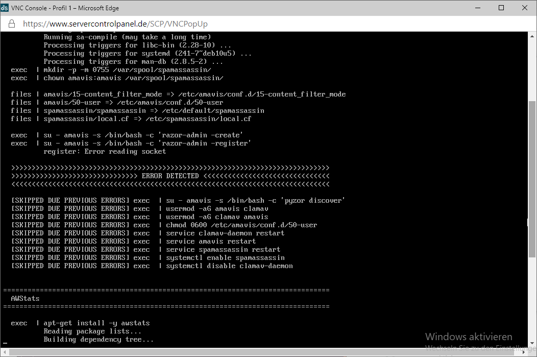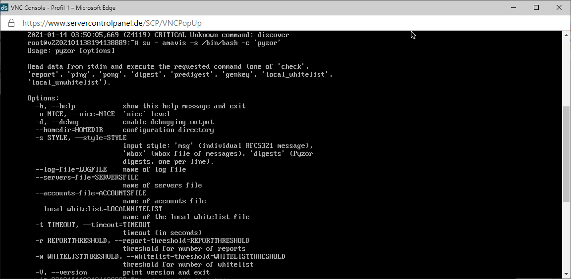 Oder du versucht es händisch zu reparieren, indem du die fehlgeschlagenen Kommandos händisch ausführtst, z.B. den pyzor discover (natphrlich vollständig ohne exec), etc.