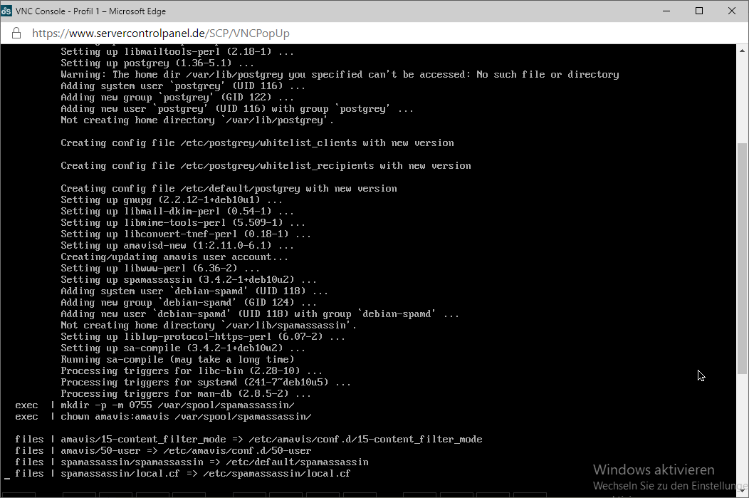 Die Installations-email kam an, mit der Meldung das ein paar Dinge nicht so gelaufen sind wie es sollte.