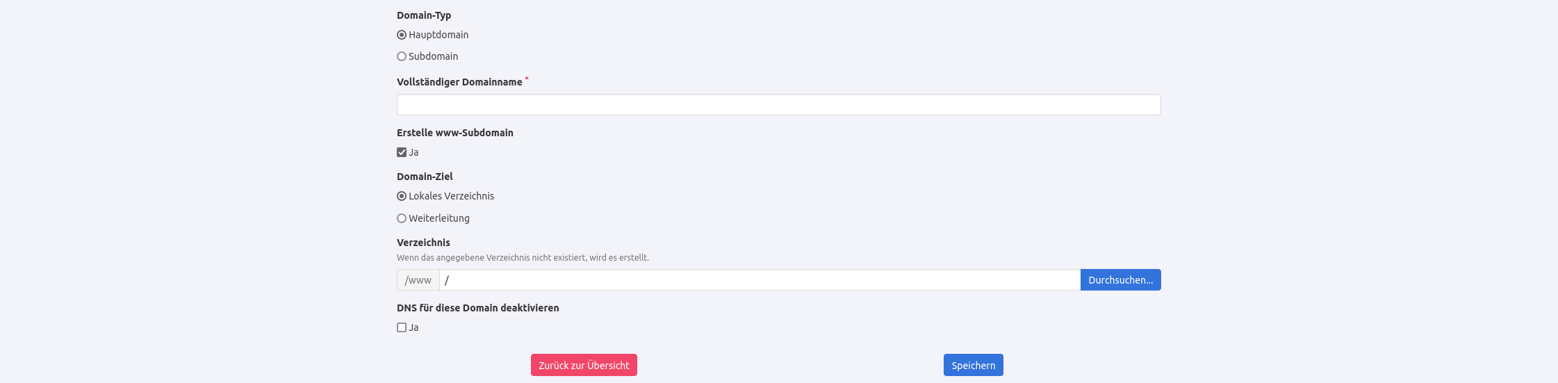 Bei der Einrichtung einer neuen Domain wird nach dem Anlegen einer www Subdomain gefragt. Ich habe den Haken einfach drin gelassen. Hätte ich ihn raus nehmen sollen?