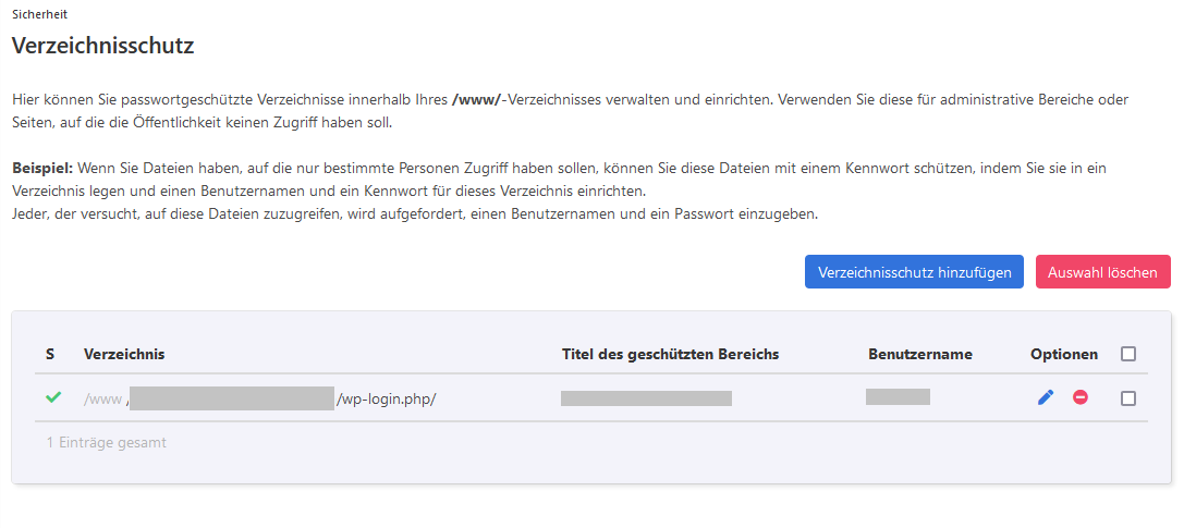 Also statt dem Wort "Verzeichnisschutz" zum Beispiel "Passwortgeschützte Verzeichnisse"?