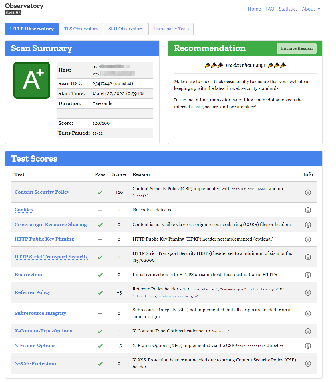 Durch das ganze rumgeteste stand in der vhost (nicht custom_vhost), trotzdem noch die 301 Weiterleitung auf www.abc.de drin obwohl ich im keyhelp die Weiterleitung bei der Hauptdomain entfernt hatte. Wie auch immer, ich habe nun die Hauptdomain abc.de die auf Verzeichnis abc zeigt und dann habe ich die subdomain www.abc.de die auch auf das Verzeichnis abc zeigt. Den redirect auf www.abc.de übernimmt die Anwendung, in diesem Fall wordpress denn dort ist ja als Site schon www.abc.de eingestellt. Es wird also in jedem Fall auf die www subdomain umgeleitet und nun ist auch Mozilla Observatory zufrieden und auch der HSTS Check und ich auch 8-) Vielen Dank für die tatkräftige Unterstützung!