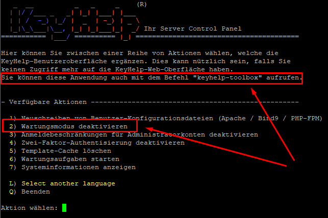 ausführen, dann Punkt 2 "Wartungsmodus deaktivieren"