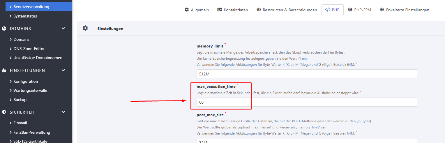ramfresser wrote: Wed 19. Jul 2023, 09:58 Besteht die Möglichkeit über das Keyhelp Panel, diese eine Einstellung temporär zu ändern oder muss ich wirklich in der php.ini Datei per ssh es umstellen und natürlich auch zurück stellen?