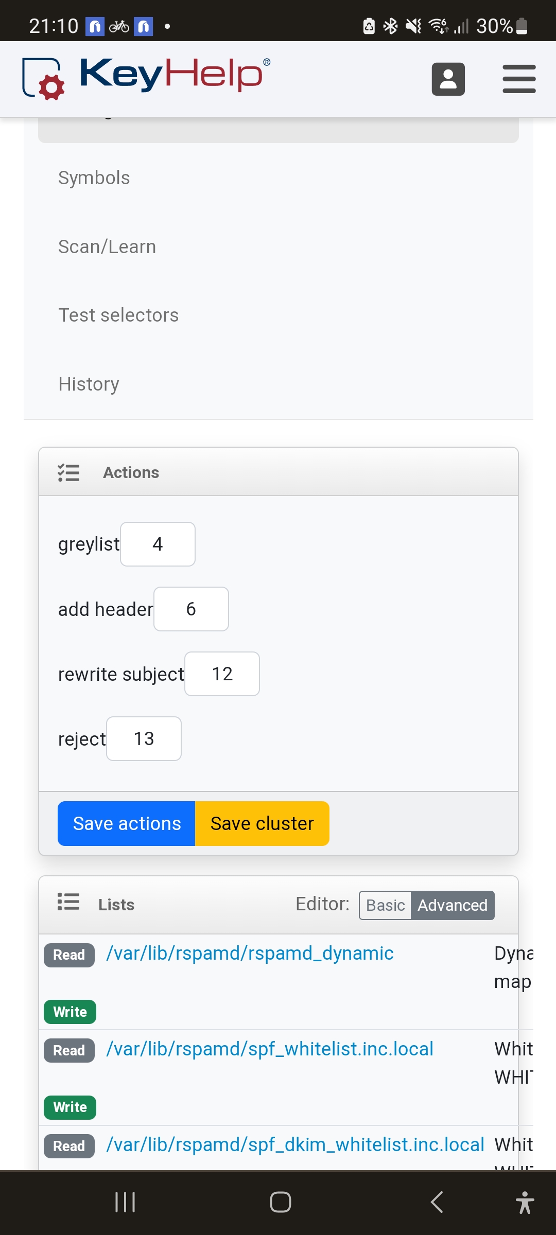 vielen Dank für deine Nachricht. Kenne Rspamd schon von Mailcow, hab nur keine Lust mehr Mails separat zu haben. Hatte unter debian 11 auch keyhelp auf rspamd umgebaut und alles lief bestens.