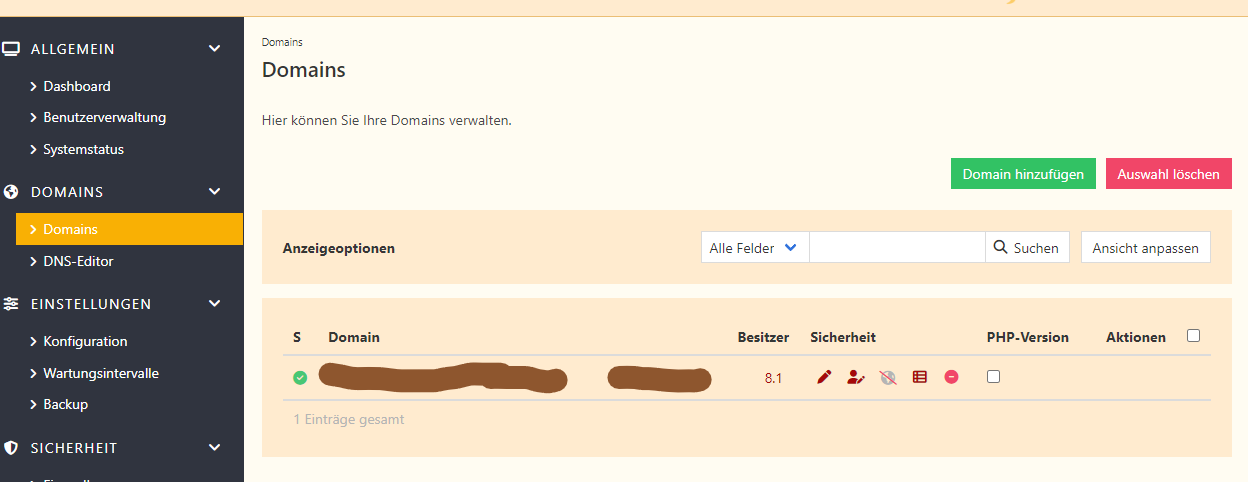 Übersicht Domains => Domains aufrufen und gucken