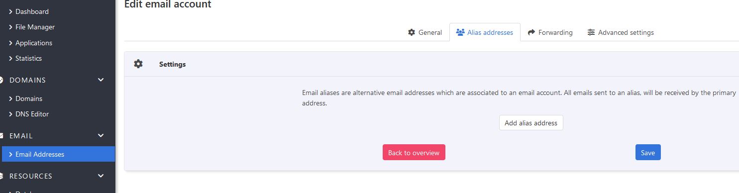 I recently installed the keyhelp cp and its cool but How can i create Alias emails i cant understand any advice please ?