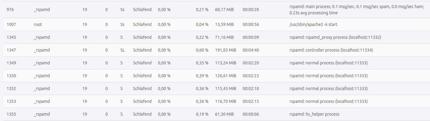Auf meinem privaten Server belegt Rspamd 630 MB RAM.