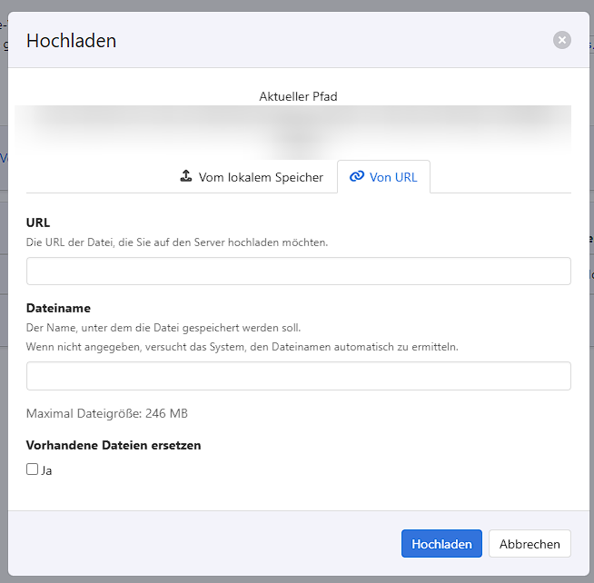 kann mir jemand verraten wie ich die Maximale Dateigröße von 246 MB vergrößere beim Hochladen von URL?
