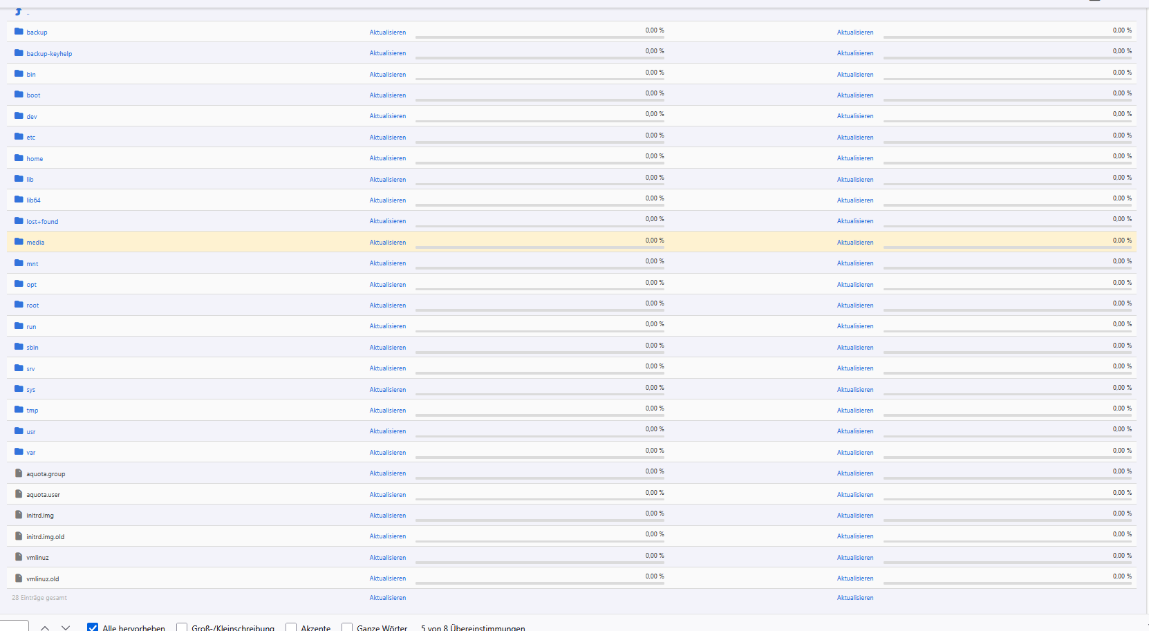 DAnke für die Hinweise. Warum aktuellisiert Keyehelp nicht von selbst ^^. Aber alle Ordner die 108GB vom 28.12. dem Tag an dem ich das erste Mal, die neue Backupverwaltung voN Keyhelp nutzte., Spricht also dafür das die Ordner durch Keyhelp angelegt wurden. Komisch oder wie erklärt sich das?Bei der Festplatten-Auslastung mal auf „Aktualisieren“ - Link klicken. Dann werden Speicherplatz und Dateien gezählt.