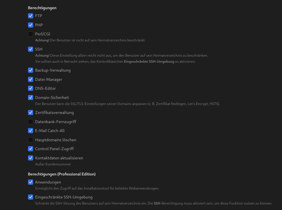 DenyGroups keyhelp_nossh keyhelp_suspendedRe: Verbindung mit ssh bei pro Version