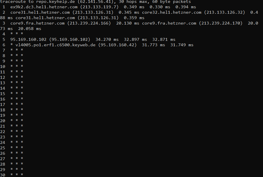 Tobi wrote: ↑Wed 15. Apr 2026, 11:32 Was sagt denn ein ping oder traceroute auf https://repo.keyhelp.de/ ?
