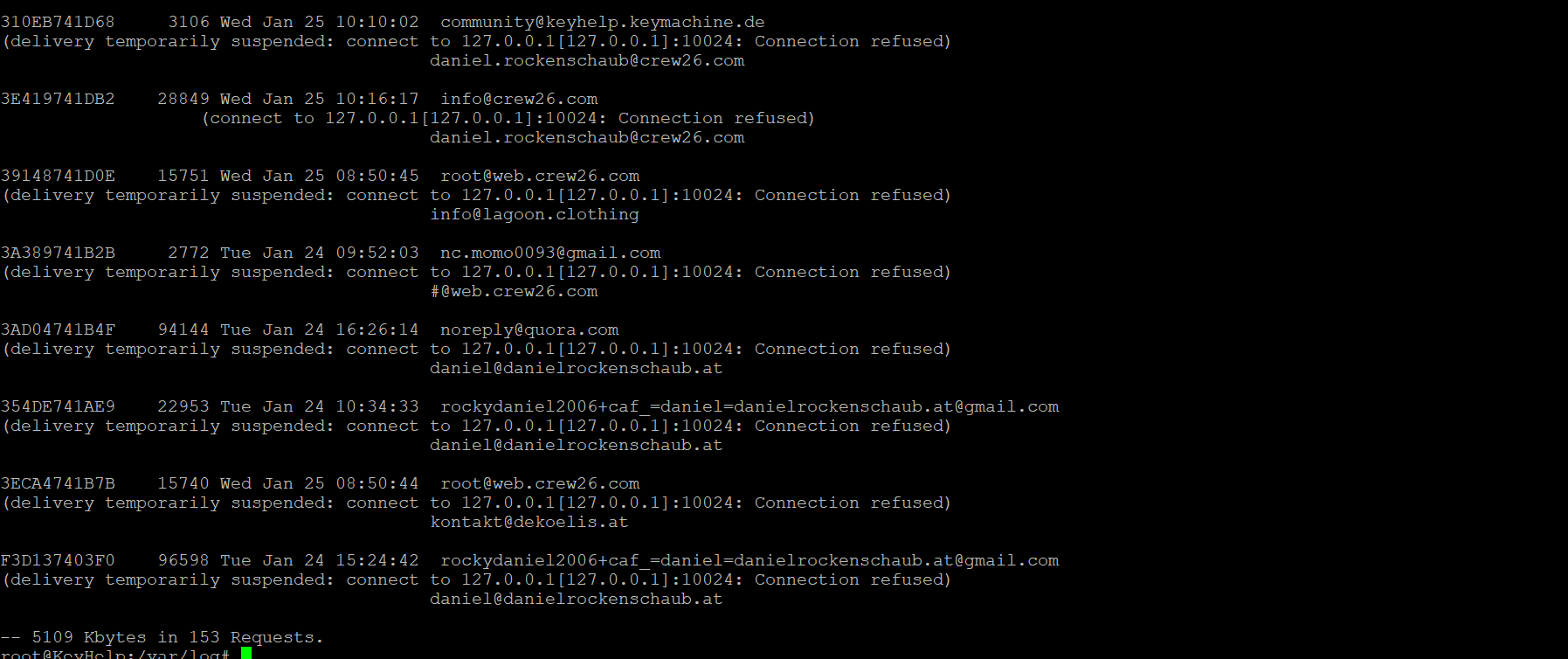 Amavis neustarten (über Keyhelp oder Konsole) und dann mittels