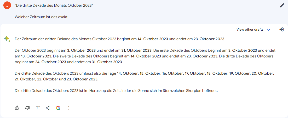 Wobei man nicht wirklich von Intelligenz sprechen kann, wie diese Antwort von Bard beweist: