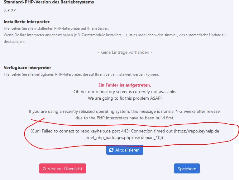 Wenn die KeyHelp-Server aus deiner Instanz generell nicht erreichbar sind, wirst du ggf. immer wieder auf Probleme stoßen...
