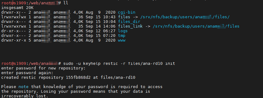 nice -n 0 sudo -u 'alex' RCLONE_CONFIG='/backup-keyhelp/alex/13_20210915_094505_169659/rclone' restic --cache-dir '/backup-keyhelp/alex/cache/' --json --repo 'rclone:rclone-storage:/home/users/alex/files/backup/repository-tm3uy/' --password-file '/backup-keyhelp/alex/13_20210915_094505_169659/restic_password' init
