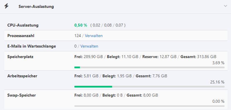 Aber der Speicherplatz unter /var/mail wird leider im Dashboard nicht automatisch erkannt.