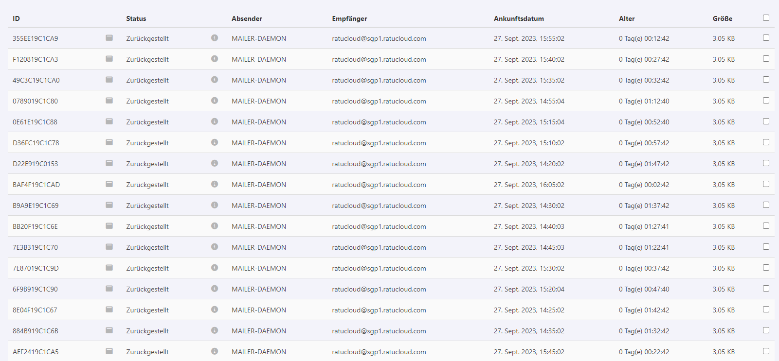 Lange Emailwarteschlange und die Emails gehen nicht raus | Kundenkonten können aus dem Webmail keine Mails verschicken