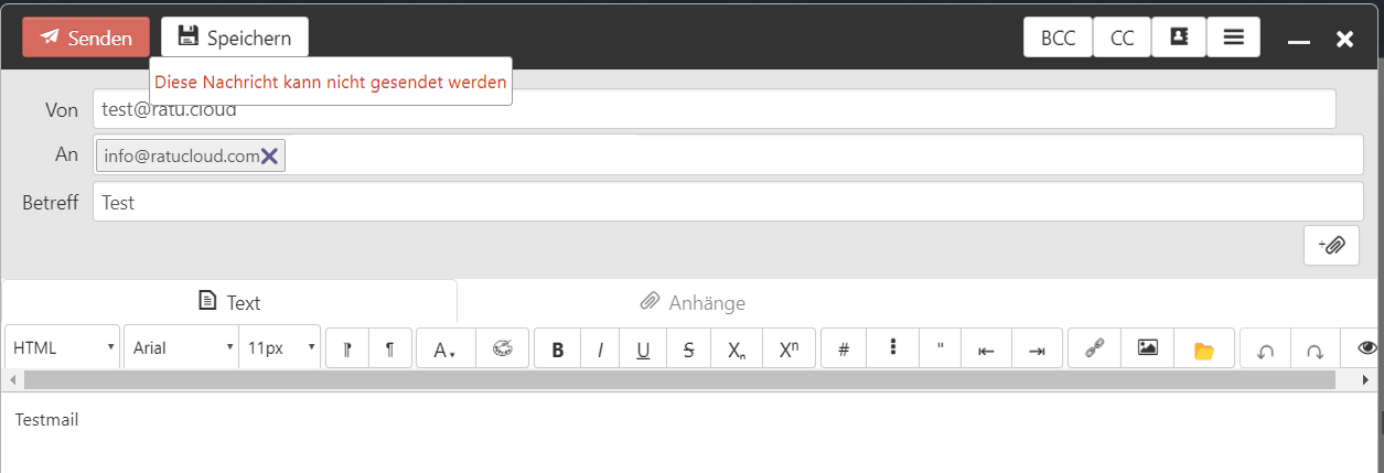 Versuch eine Mail zu senden (an alle externen mails ist es kein Problem):