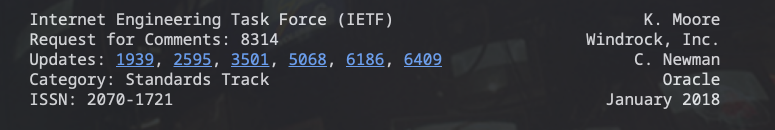 Es ist zu sehen, daß die RFC 6409 (aus 2011) von der RFC 8314 (aus 2018) abgelöst wurde: