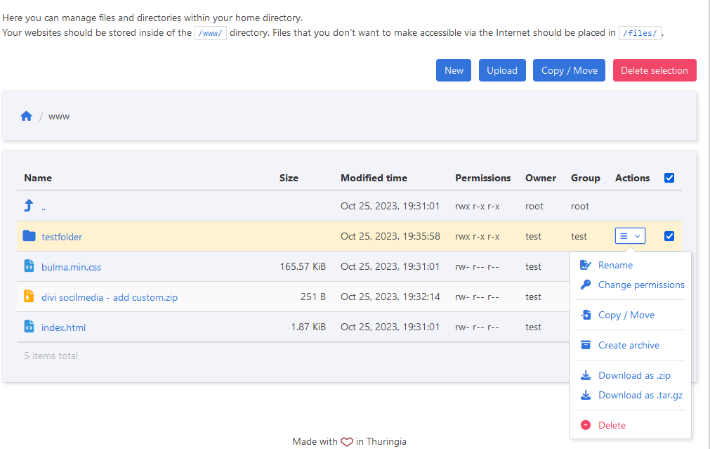 Create Archive (this will only compress the test folder even though all the items are ticked)