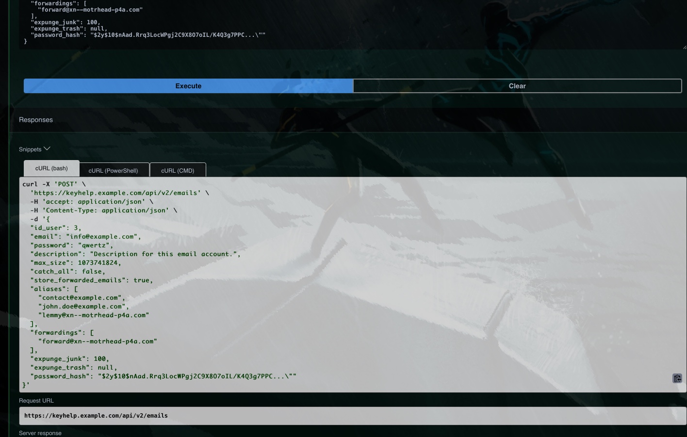die API Schnittstelle ermöglicht ja das anlegen von eMail-Adressen, gibt es hier im Forum dazu ein Beispiel für den POST Befehl?