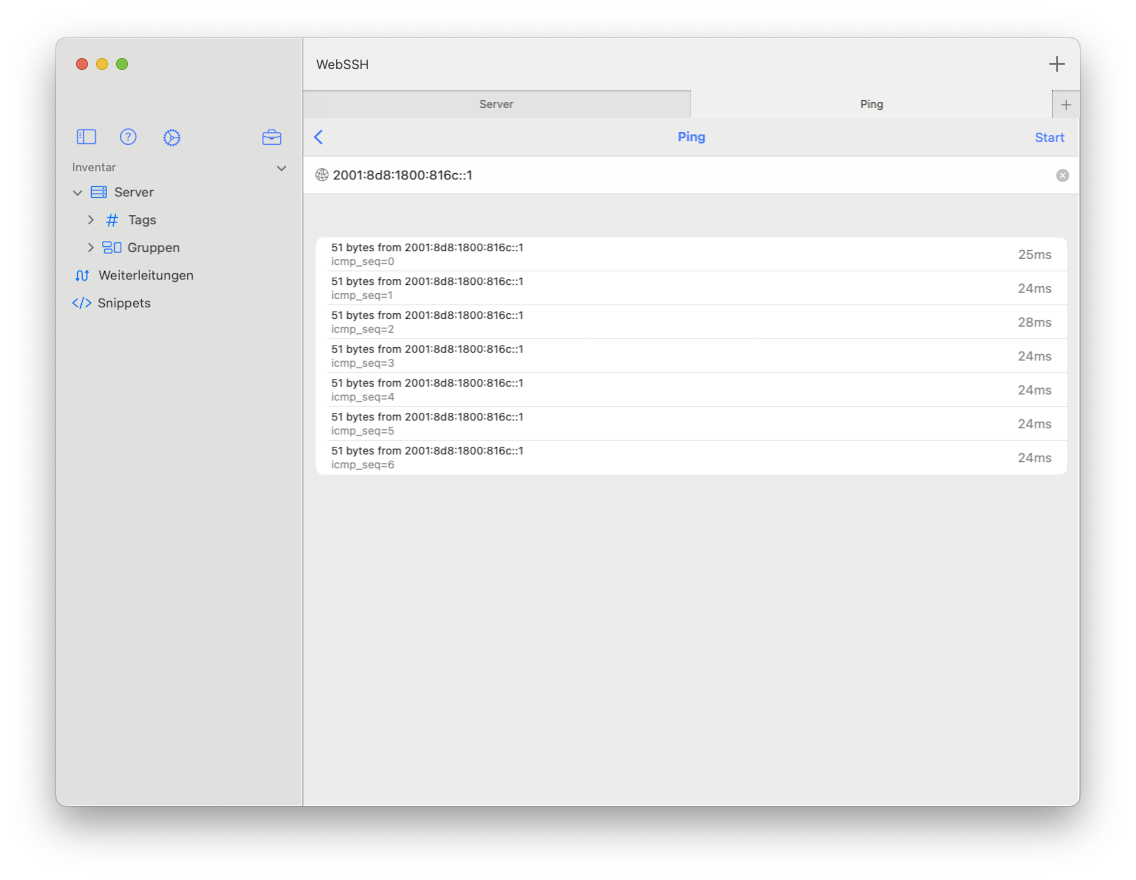 64 bytes from 2001:8d8:1800:816c::1: icmp_seq=5 ttl=53 time=12.8 ms