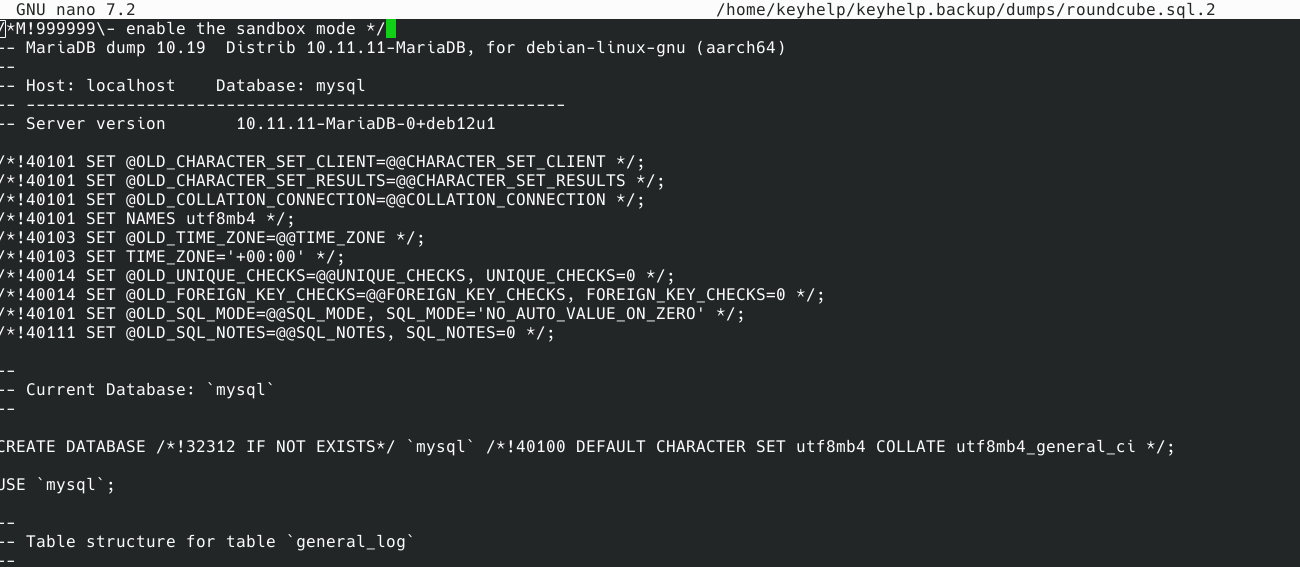 Hier wurde ein mysql full dump als roundcube.sql.2 erstellt.