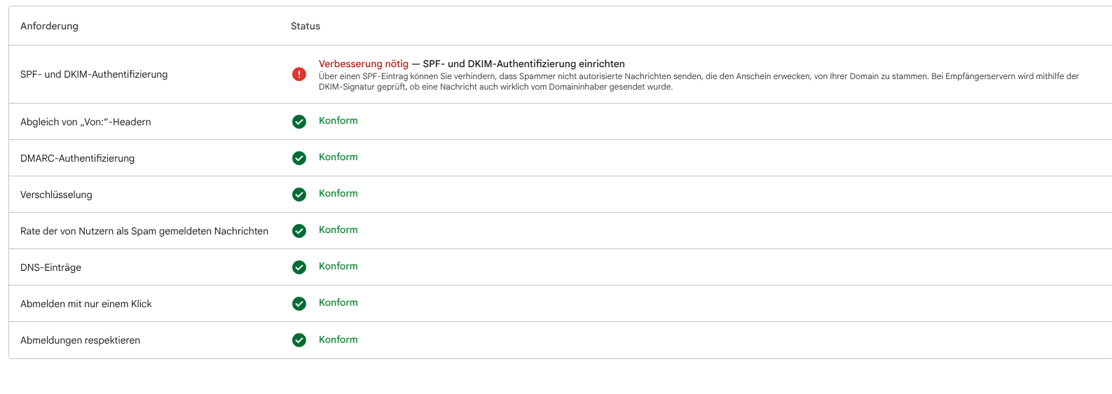 otto58 wrote: Wed 13. Aug 2025, 19:11 Bei meinen beiden Seiten zeigt der Postmaster aktuell auch bei der "SPF- und DKIM-Authentifizierung" Konform.