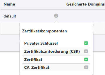 Das was im Screenshot zu sehen ist ist entweder das selbst-signierte Zertifikat, das während der KeyHelp Installation durch KeyHelp abgelegt wurde, oder ein manuell hinzugefügtes Zertifikat, dem der name "default" gegeben wurde.