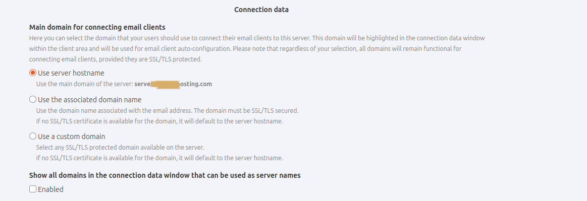 tried to change Main domain for connecting email clients Use the associated domain name No chance
