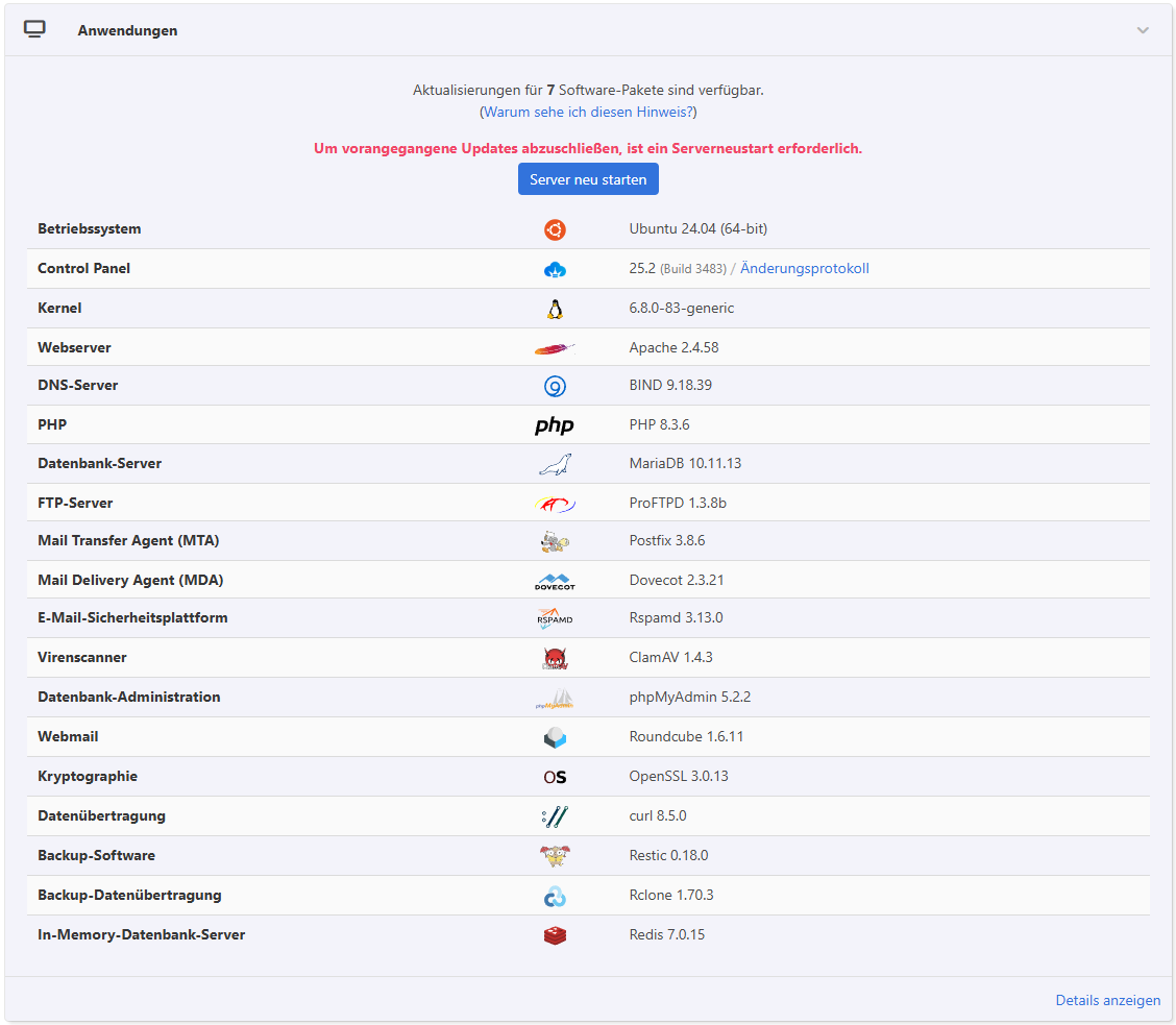 Ich habe gestern auf meiner Dashboard Seite festgestellt das Updates gelaufen sind welche noch einen Server Restart benötigen.